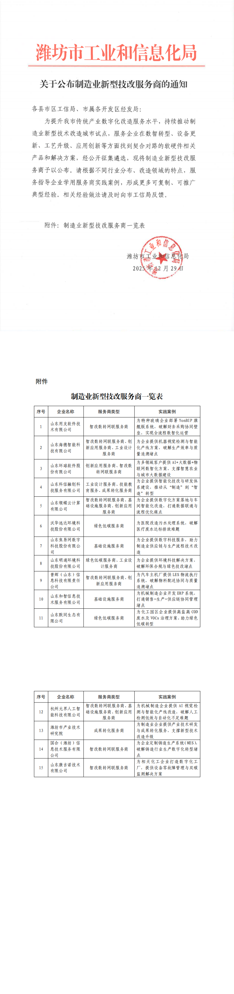 附录:潍坊市工业和信息化局关于公布制造业新型技改服务商的通知