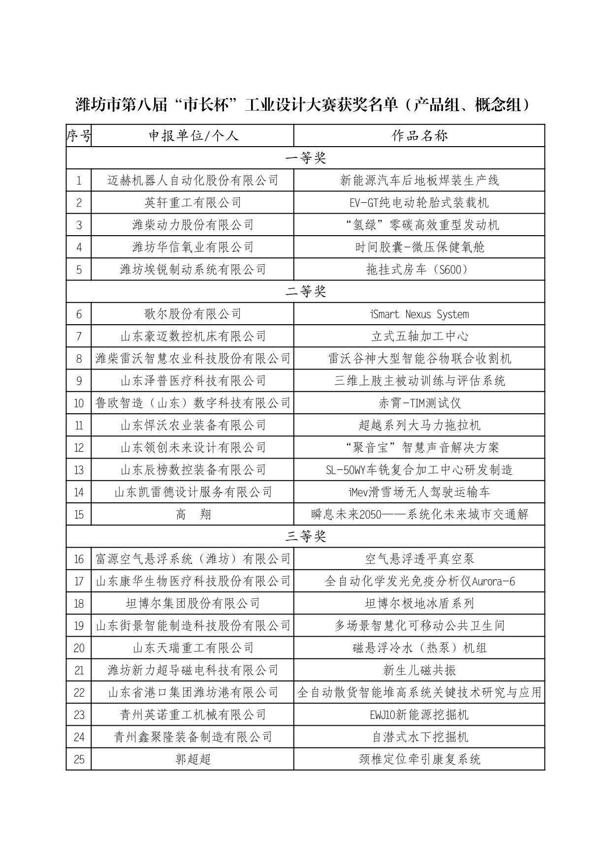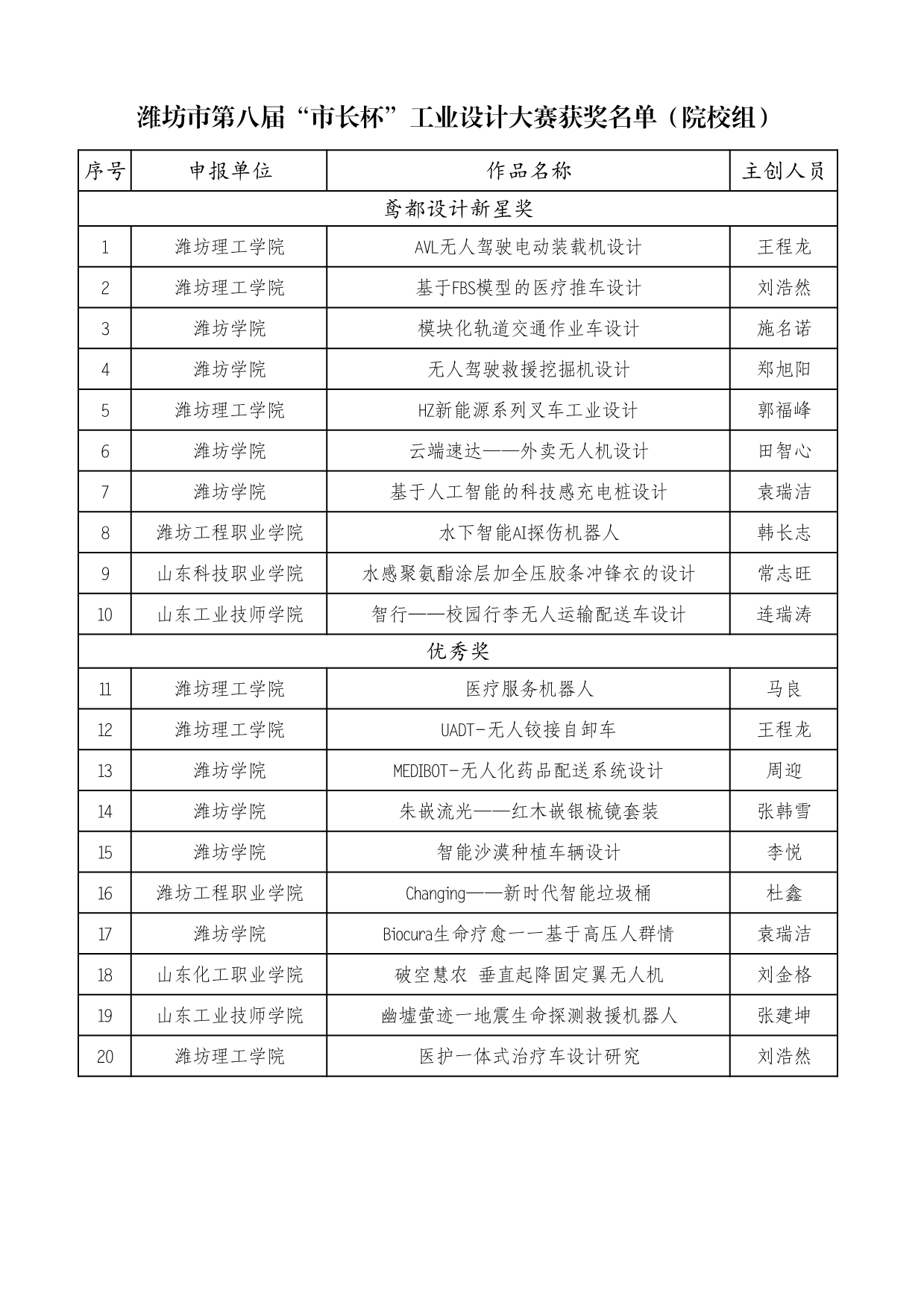 附件:潍坊市第八届“市长杯”工业设计大赛获奖公示名单