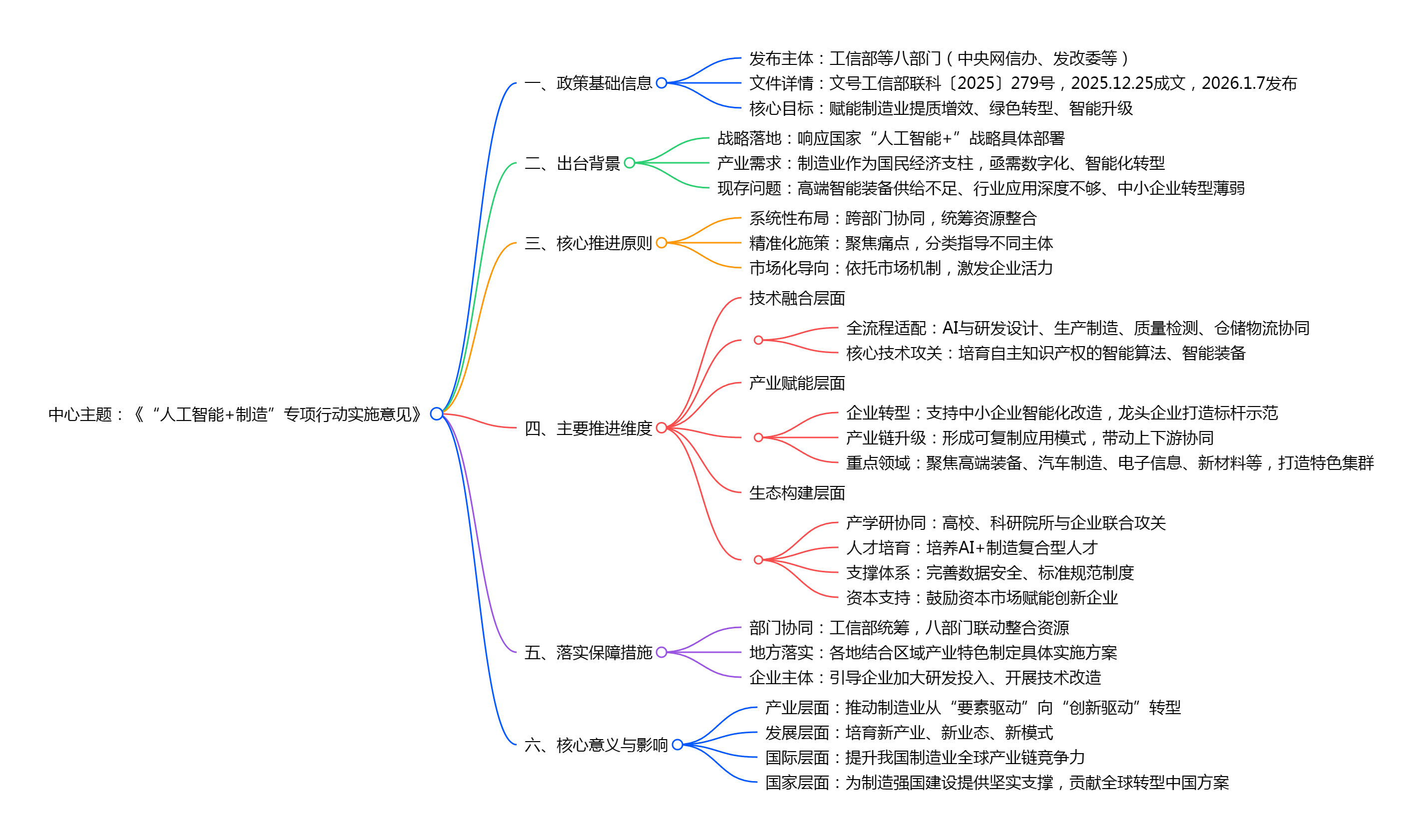 2026年1月7日,工业和信息化部联合中央网信办、国家发展改革委、教育部、商务部、国务院国资委、市场监管总局、国家数据局等八部门,正式发布《“人工智能+制造”专项行动实施意见》(以下简称《意见》),以工信部联科〔2025〕279号文印发各地各相关单位,要求结合实际抓好落实。该文件成文于2025年12月25日,作为推动人工智能与制造业深度融合的顶层设计文件,标志着我国 “人工智能+制造”发展进入系统化、规模化推进的新阶段。